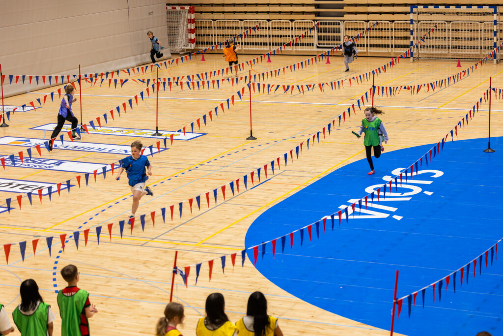 Svo í lokin var komið að rúsínunni í pylsuendanum, keppni á milli skólanna þriggja í hringboðhlaupi. Þar kom keppnisskapið heldur betur í ljós og ekki síður hversu svakalega flott stuðningslið krakkarnir mynduðu fyrir sína skóla, þakið ætlaði að rifna af húsinu undir lokin.